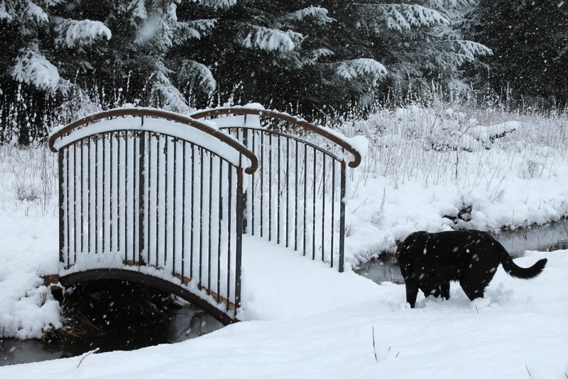 Slethavebloggere har vist en særlig evne til at finde partnere, der fungerer perfekt som handymen i haven:-) Jeg glæder mig mere over synet af broen end af sneen, må jeg tilstå.